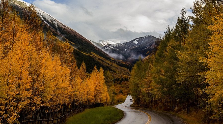 This high-altitude drive (12,095 feet) along Highway 82 is lined with endless golden groves and sweeping valley views.