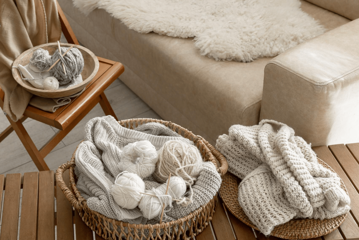 Add layers of comfort through cashmere throws, shearling cushions, and wool rugs. Replace summer linens with flannel or velvet, and let texture take center stage.