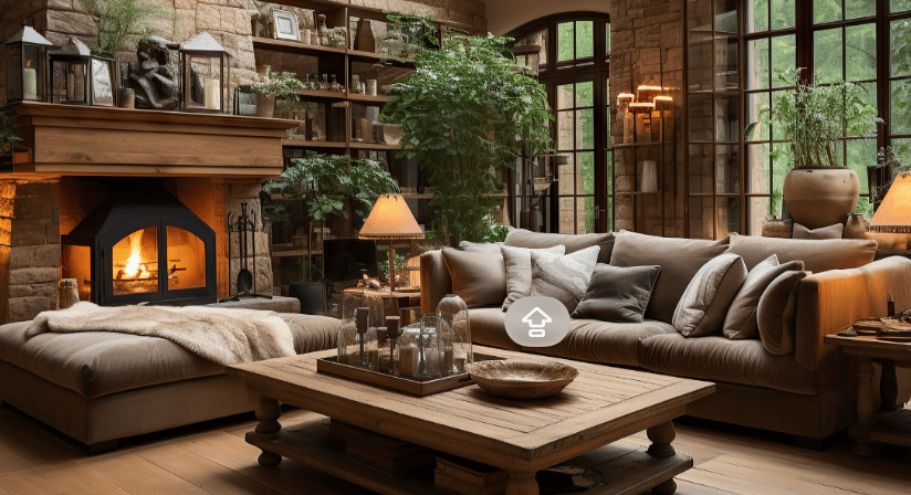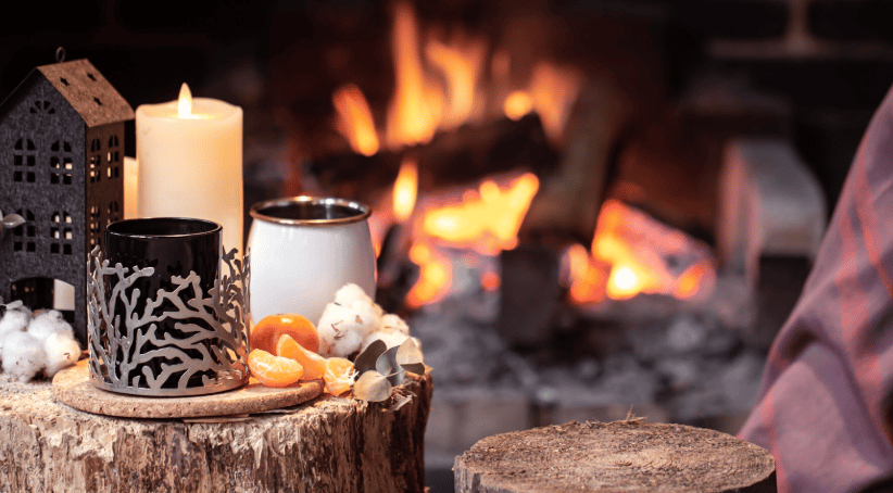 Highlight fireplaces with neatly stacked wood.