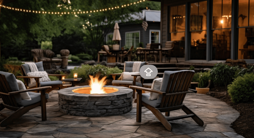Firepits, throws, and lanterns on patios.
