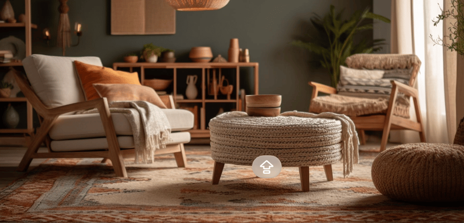 Warm-toned pillows in rust, sage, or golden hues.